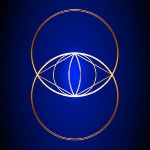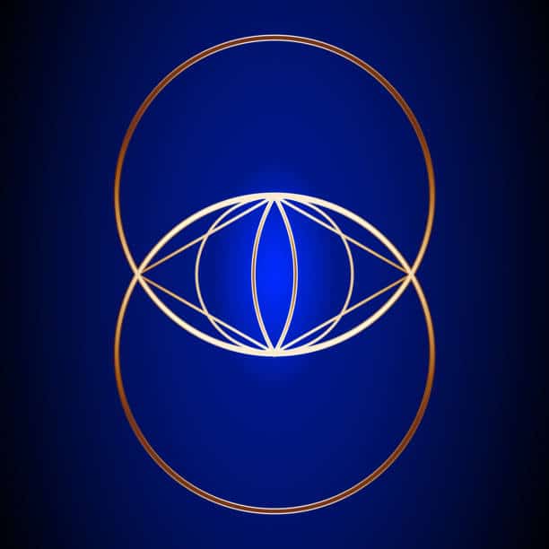 Gold Vesica Piscis on dark blue background